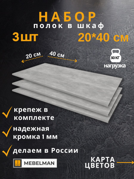 Полка MEBELMAN Настенная, 40х20х1.6 см