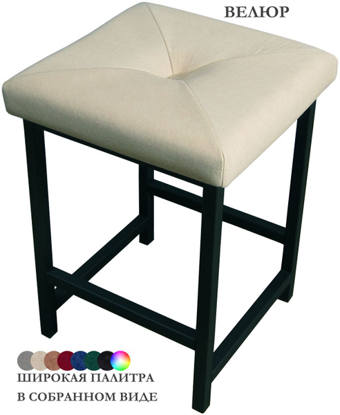 Табурет для кухни в стиле лофт, Велюр бежевый, металлический с мягким