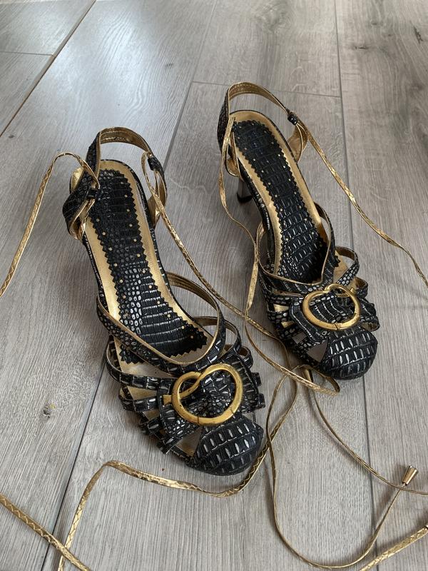 Босоніжки на завʼязках та каблуку сірого кольору розмір 39 стелька 25