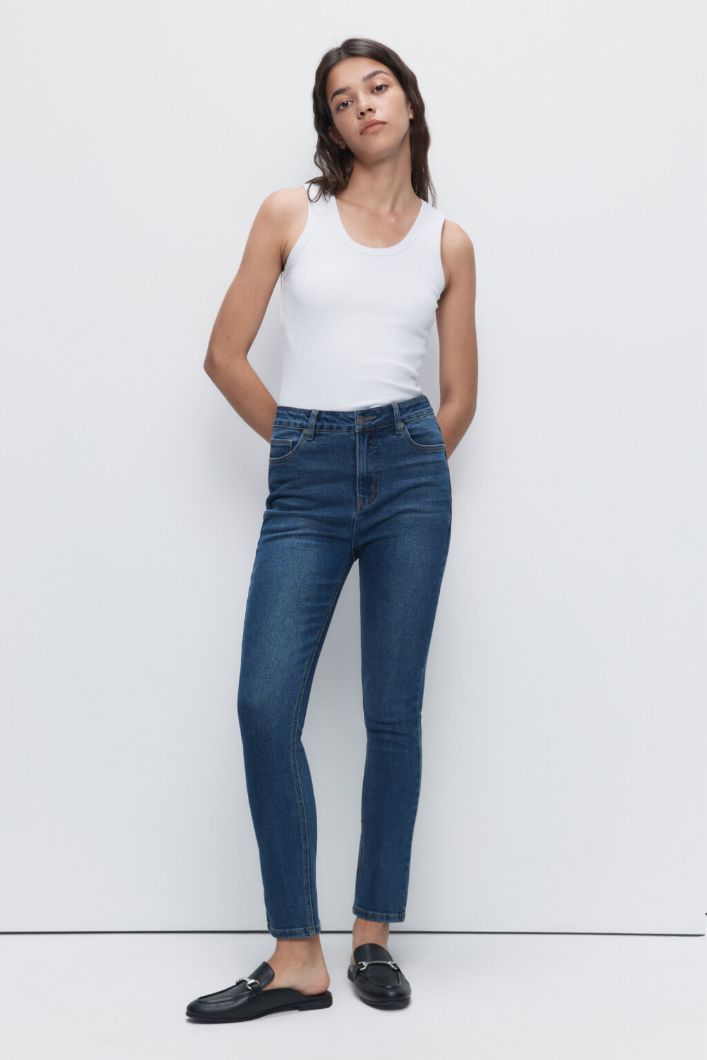 Джинсы slim зауженные с высокой посадкой 2341062717, цвет: синий (104