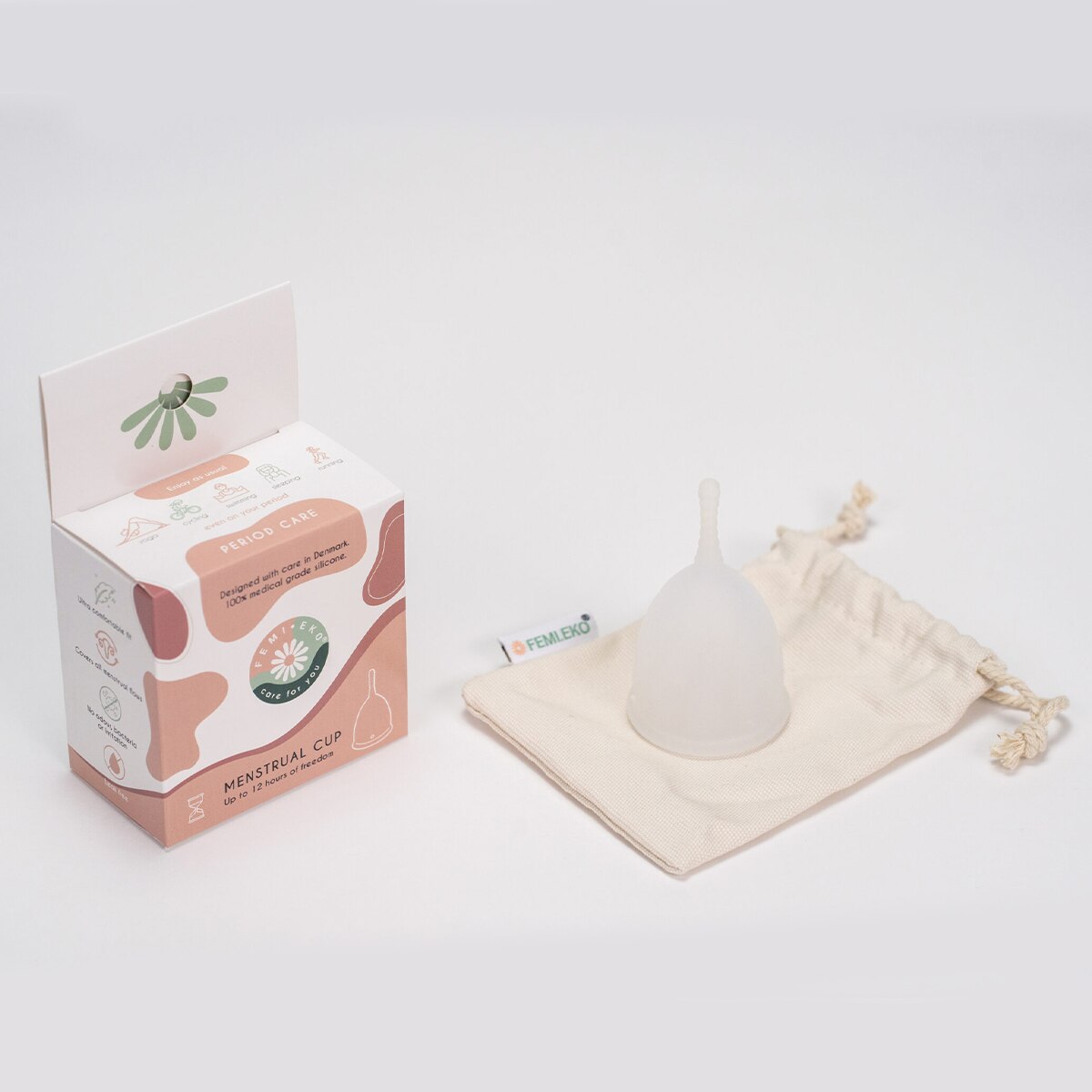 Менструален комплект FEMIEKO, бикини IDA и менструална чашка Естествен