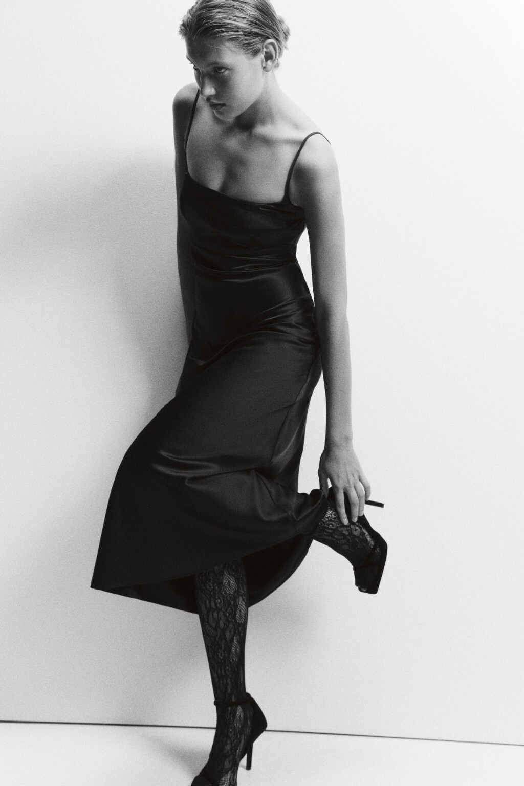 Платье-комбинация миди атласное с принтом 2411414007, цвет: черный (50
