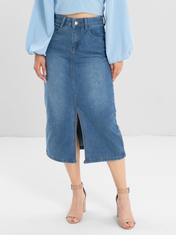 Женская джинсовая юбка миди с разрезом Aloha купить по цене 1499 ₽ в