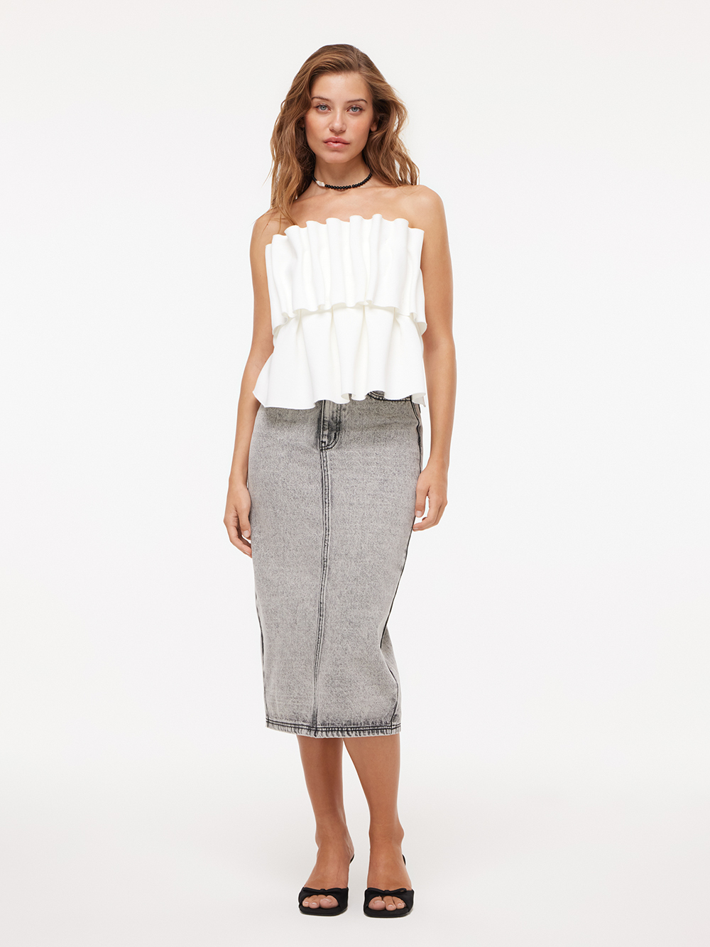 Джинсовая юбка миди прямого силуэта с разрезом 02424794S021, цвет Белый