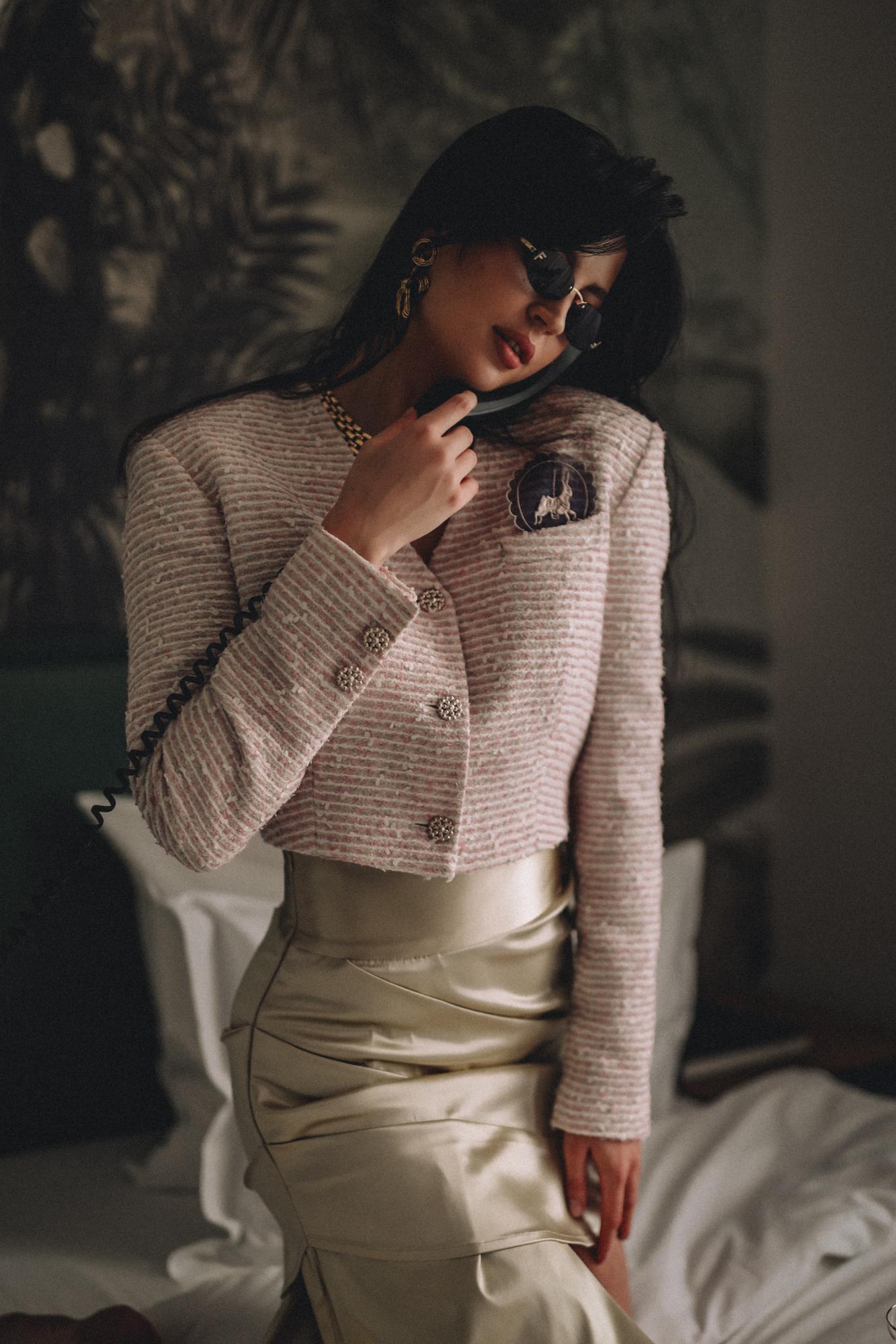 Невероятной красоты комплект из твида Chanel. Рубашка комбинированная